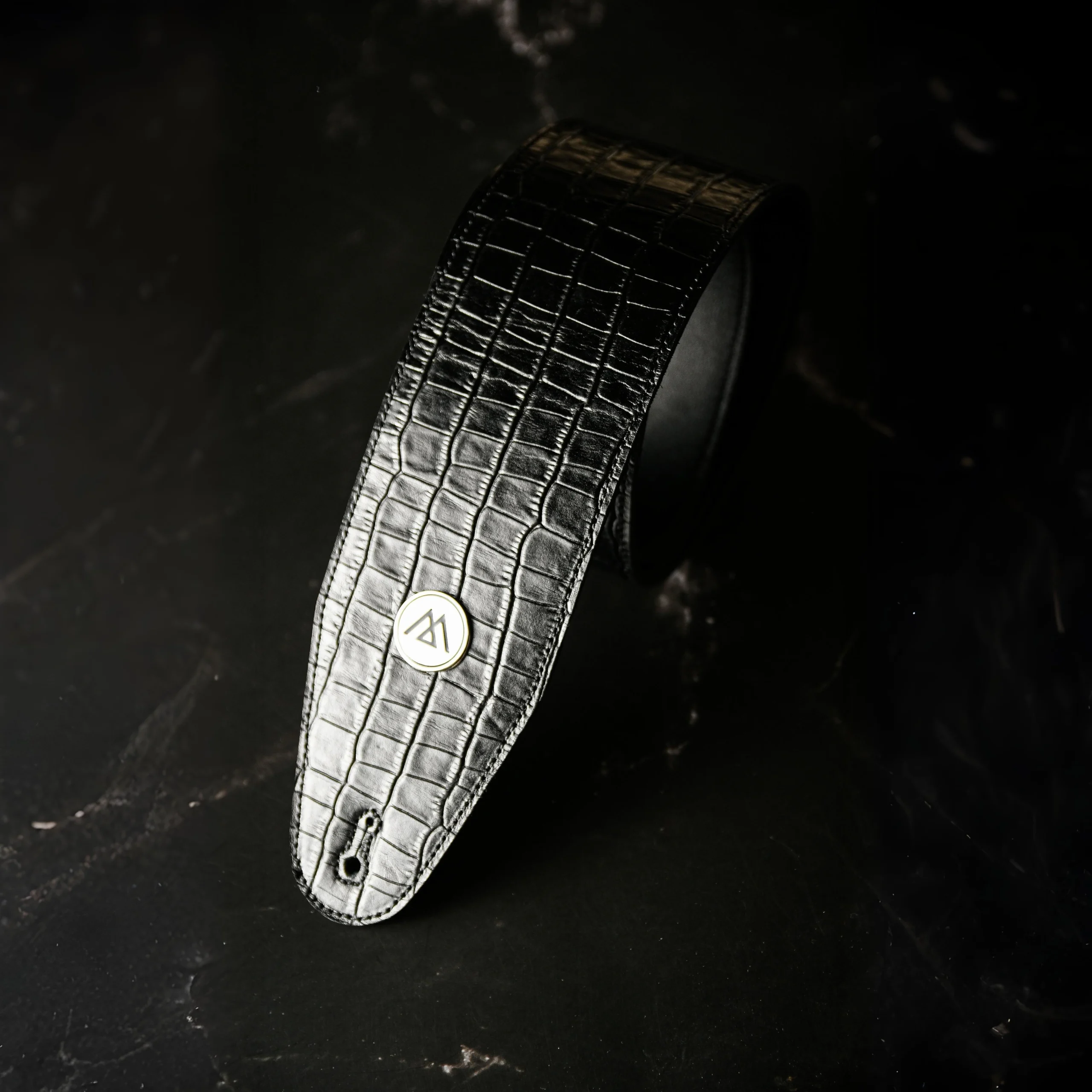 La Croco Negra es una correa de guitarra que combina elegancia clásica con actitud. Su acabado en cuero negro con relieve tipo cocodrilo la convierte en una pieza sobria pero con carácter, ideal para músicos que buscan presencia sin estridencias.