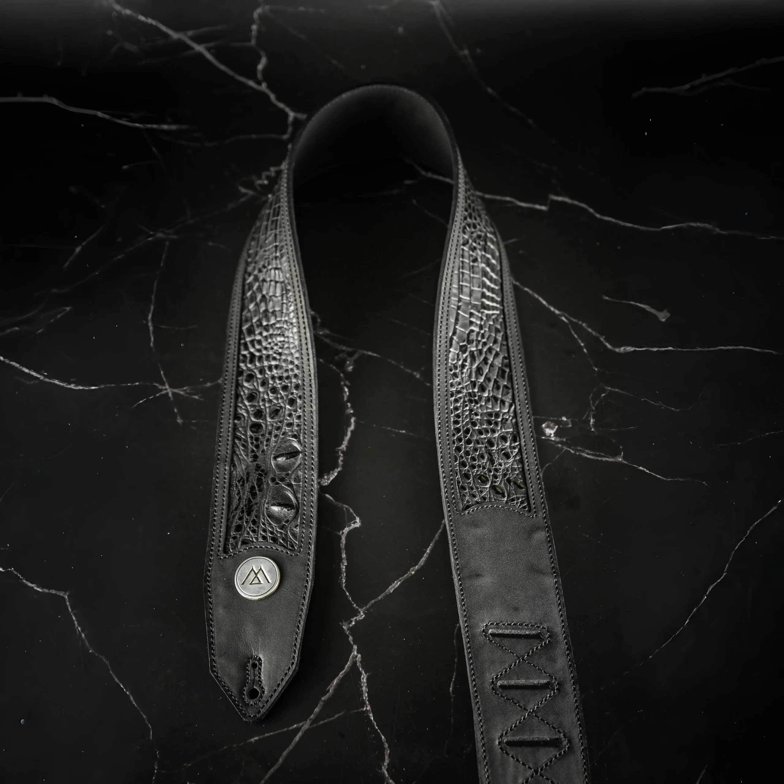 Diseño moderno con marco en todo el cuerpo y cuero central con textura estampada tipo komodo. Ancho de 6 cm, regulable entre 1,10 y 1,45 m. Comodidad, carácter y estilo en cada detalle.
